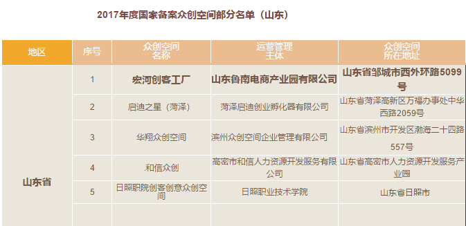 【鲁南电商财产园】荣获2017年度国度备案众创空间 |